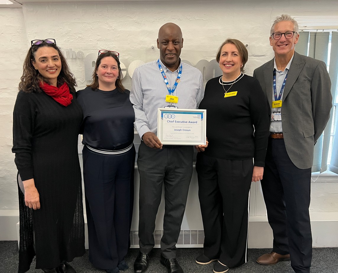 Joseph Orosun has been awarded UHNM’s Chief Executive Award by Dr Simon Constable after being nominated jointly by Jane Haire, chief people officer, Sadaf Butt, OD consultant and Charlotte Lees, OD, culture and inclusion business partner.